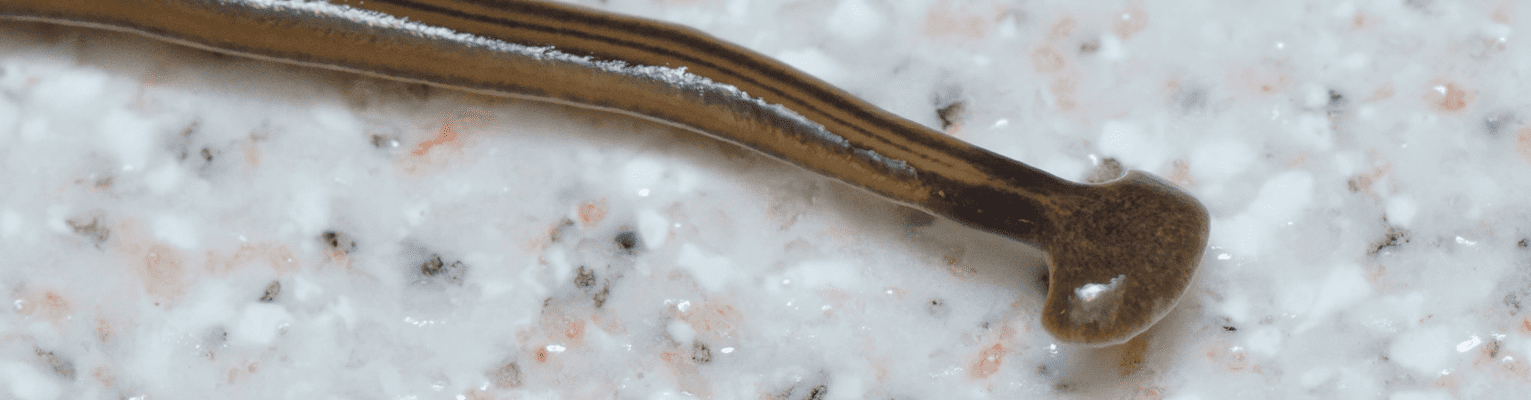 Les Plathelminthes sont des vers plats vivant principalement dans la litière des sols et qui se retrouvent en journée cachés sous des roches ou sous des pots. D’une taille allant de quelques millimètres à près d’un mètre, ils sont souvent difficiles à observer car ils sont plus actifs la nuit. Bien que près de 900 espèces terrestres soient décrites dans le monde, ces organismes restent encore très peu étudiés.